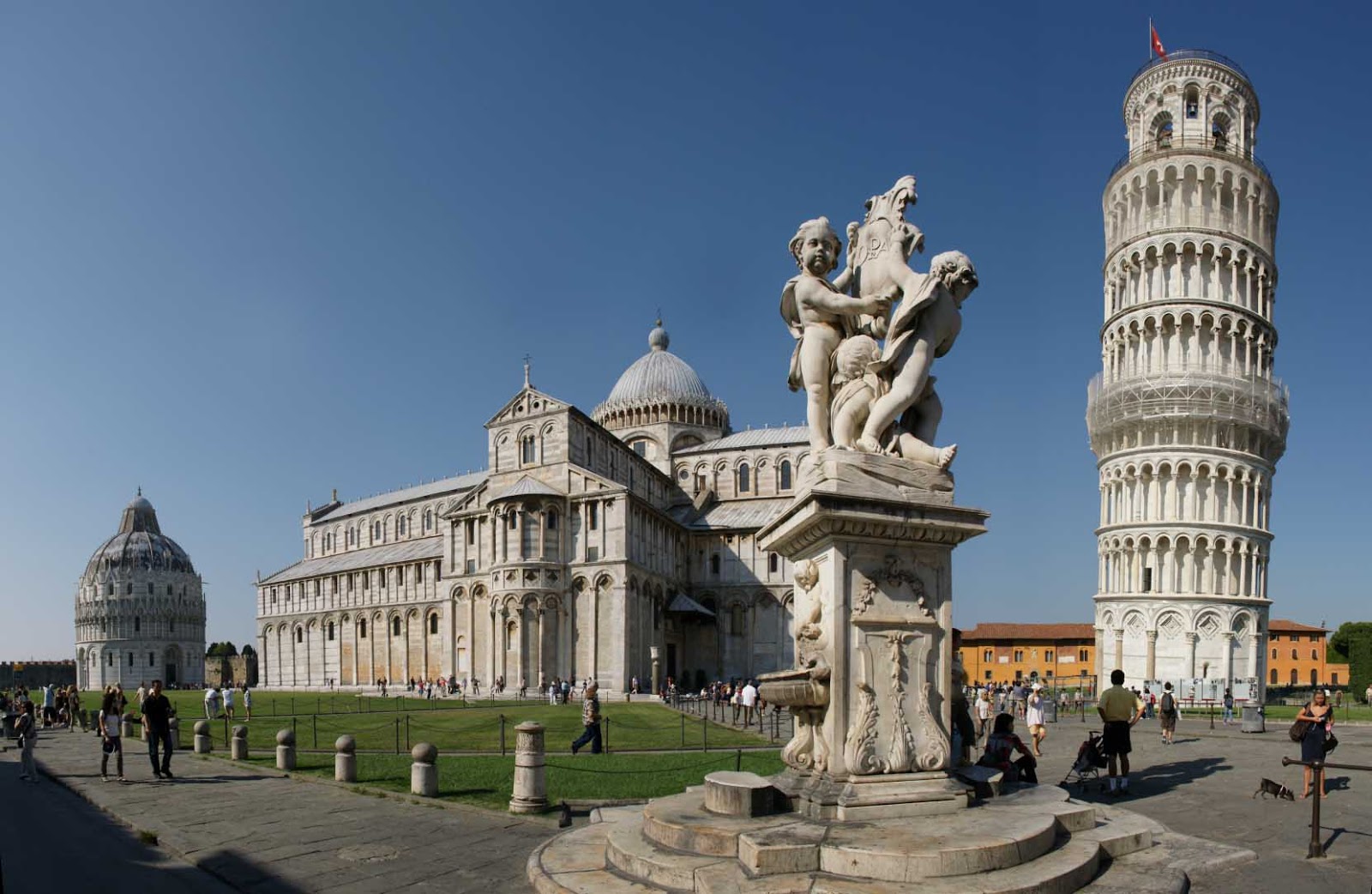 Большая часть туристических красот сконцентрирована на площади Пьяцца-дель-Дуомо, где стоит Пизанская башня. Здесь же вы увидите просто удивительное количество сувенирных магазинов, предлагающих туристам миниатюрные копии башни во всех различных аспектах (даже башни, которые светятся в темноте). Своей мировой славой Пизанская башня обязана Галилео Галилею: легенда гласит, что философ, чтобы продемонстрировать закон падения тел, поднялся на эту башню и бросал сверху объекты, выполненные из различных материалов.
