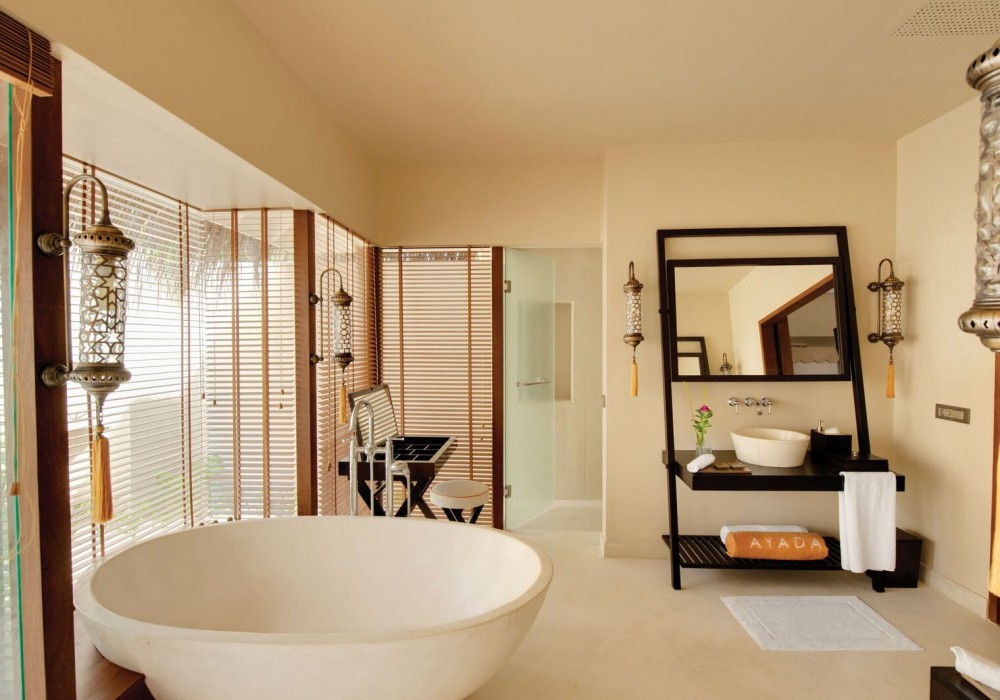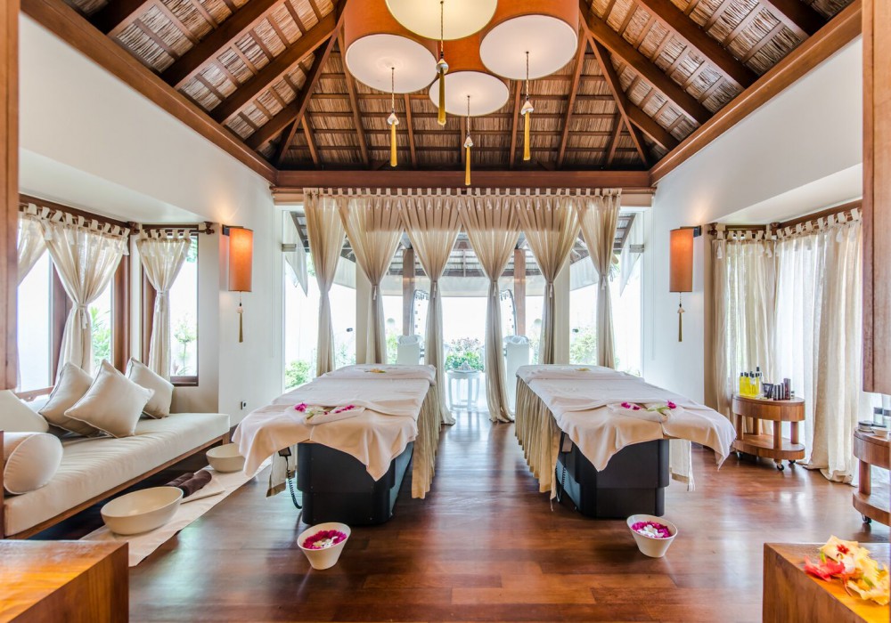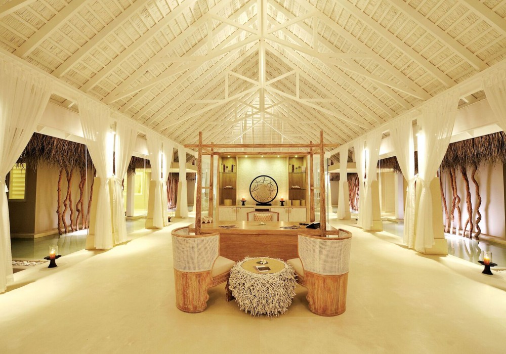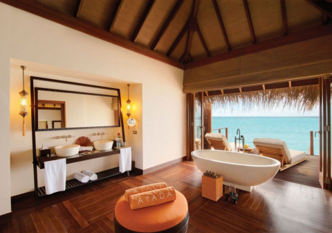 В Ayada Maldives в ваше распоряжение предоставляется просторный спа-салон "AySpa". Помещение площадью 3500 м² включает: 8 процедурных комнат, где одновременно могут находиться два человека, турецкий хаммам, виши-комнату, парилку и сауну, кабинет гидротерапии и большую зону отдыха.