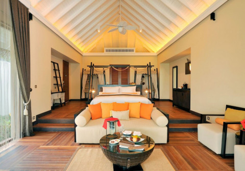 14 номеров Sunset Beach Suite with Pool (137 кв. м, расположенные на берегу кристально чистой лагуны, эти просторные сьюты вдоль береговой линии отличают обширная жилая зона, просторная индивидуальная наружная веранда, глубокий бассейн и сад, и они идеально подходят для уединенных романтических ужинов с прямым выходом к пляжу)