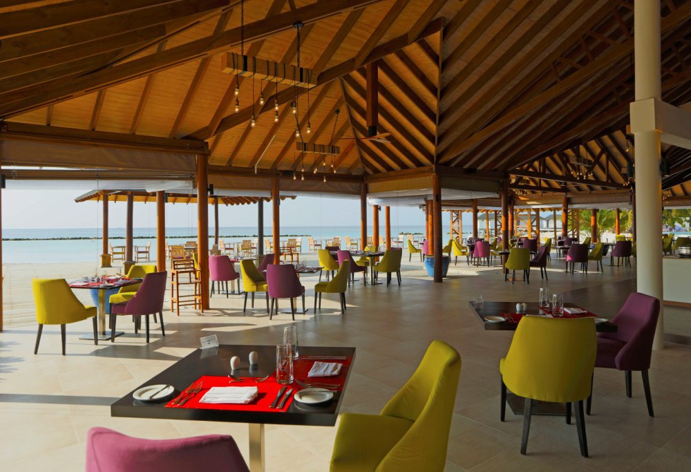 Основной ресторан Koimala Garden Restaurant, ресторан Rehendhi Restaurant & Bar (только для гостей Over Water Suite и Beach Suite with Pool), Maakana Restaurant, бар Raiyvilaa Sunset Terrace Bar, бар Raalhu Bar.