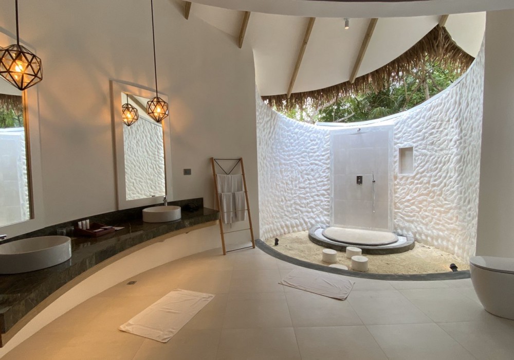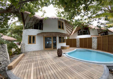 4 номера Beach Suite with Pool (170 кв.м, двухэтажные индивидуальные бунгало на берегу с частным бассейном, на втором этаже спальня с кроватью king-size и балкон, на первом этаже гостиная с верандой, возможно поставить три доп. места, ванная комната открытого плана с душем, дополнительно в номере есть кофе-машина, халаты и тапочки)
