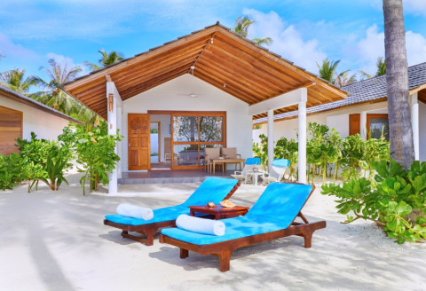 33 номера Sunset Beach Bungalow (79 кв.м, бунгало на берегу в нескольких метрах от пляжа, расположены на западной стороне острова с видом на закат. Есть совмещенные бунгало)