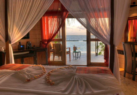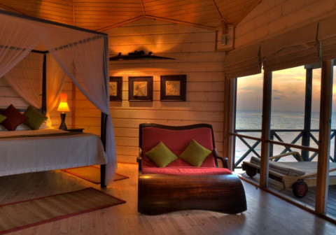 15 номеров Jacuzzi Water Villa (88 кв.м, бунгало на воде, спальня с кроватью king-size, ванная комната с джакузи, терраса с лежаками и прямым спуском в воду, дополнительно в номере DVD-плеер)
