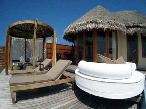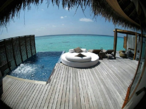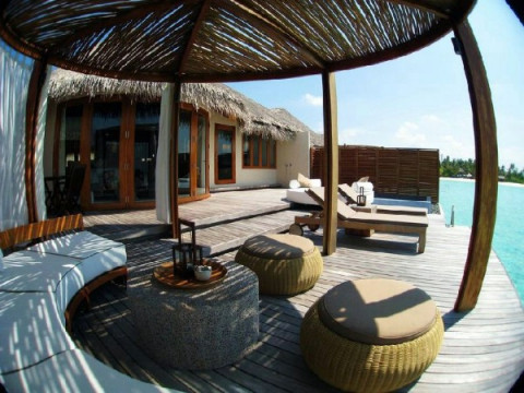 Ocean Oasis (146 кв. м, вилла над водой, имеет удобный спуск в воду, панорамный вид на океан, персональный бассейн, двухуровневую террасу с открытой зоной отдыха; пол оборудован стеклянной панелью с подсветкой)