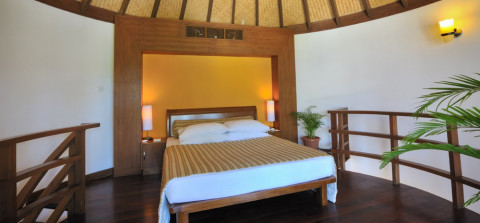 49 номеров Jacuzzi Beach Villas (58 кв. м, двухэтажные виллы на южной стороне острова; спальня с балконом на втором этаже, гостиная, зона отдыха, ванная комната, джакузи, душ, биде)