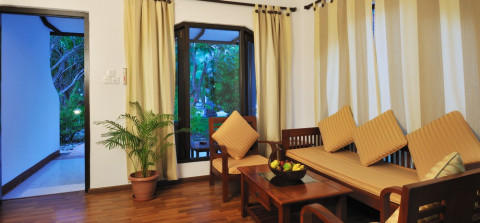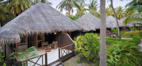 12 номеров Garden Villas (38 кв. м, номера в деревянных бунгало в центральной части острова рядом с бассейном в окружении тропического сада; зона отдыха, ванная комната с душем)