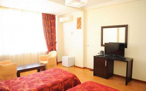 Suites - Люксы роскошные, изысканные и элегантные. В этих люксах есть гостиная и отдельная спальня. Для тех, кому нужно работать, есть широкий письменный стол, удобные кресла и большая двуспальная кровать, собственная ванная комната. Это лучший выбор для тех, кто путешествует в компании друзей или с семьей.
