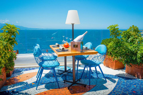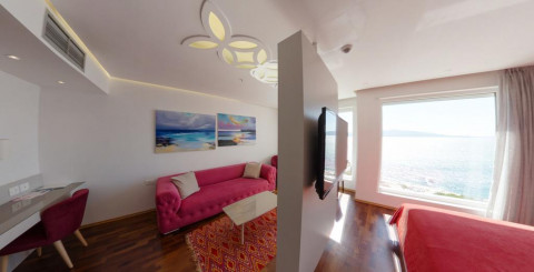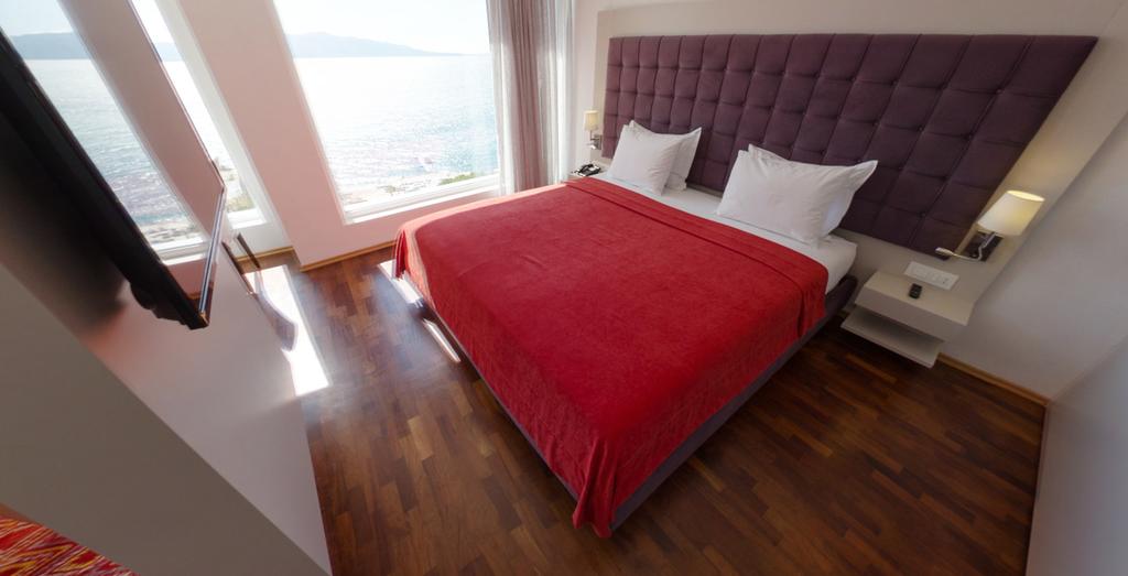 One Bedroom Apartment - с видом на море, с двуспальной кроватью, гостиная открытой планировки столовая, полностью оборудованная мини-кухня.