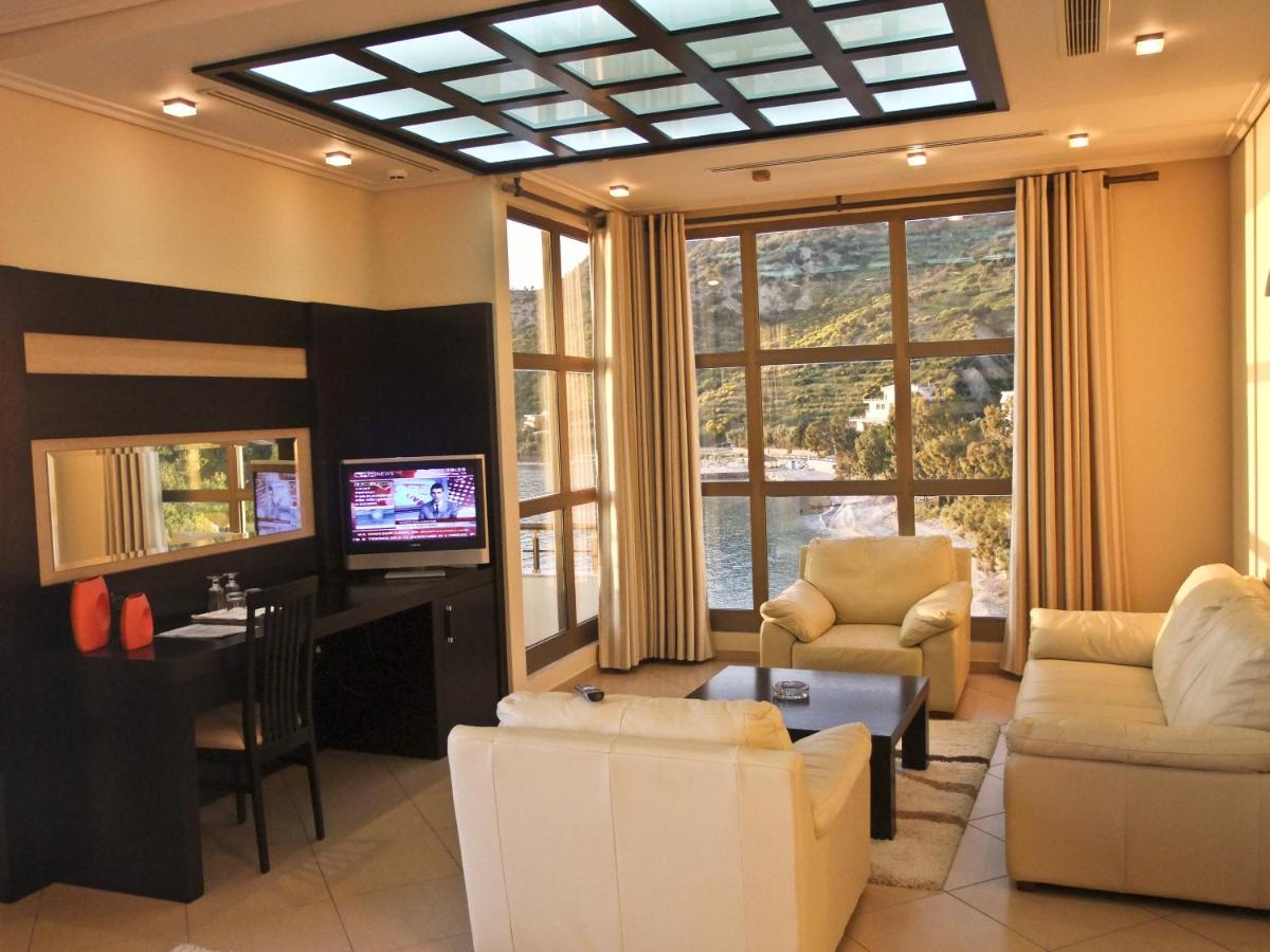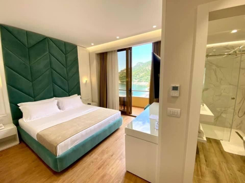 Люкс с видом на море: размещение до 2 человек (1 очень большая двуспальная кровать).