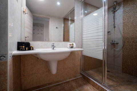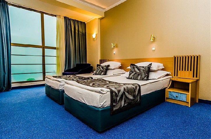 В центральной части курорта, в 350м. от пляжа, 128 двухместных номеров.