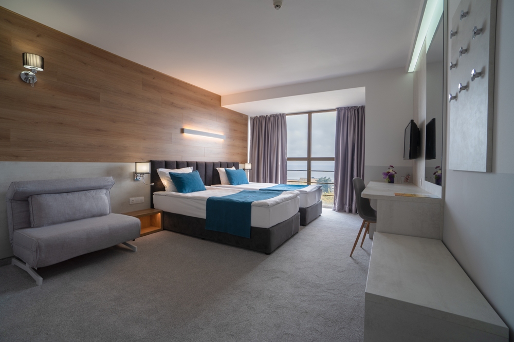 DBL FRONT PV: две односпальные кровати или 1 двухспальная кровать, раскл.кресло/раскл.диван; 1 ванная комната с ванной или душем; макс. 2в.+1р., 3в.; 22 м2;