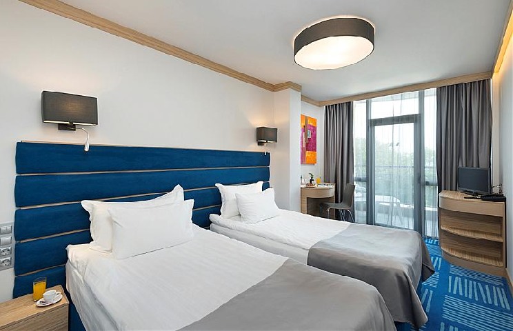 DBL STANDARD/на нижних этажах/: две односпальные кровати или 1 двухспальная кровать, 1 ванная комната с душем; макс.1в.+1р., 2в.; 17м2; с видом на парк и на бассейн;
