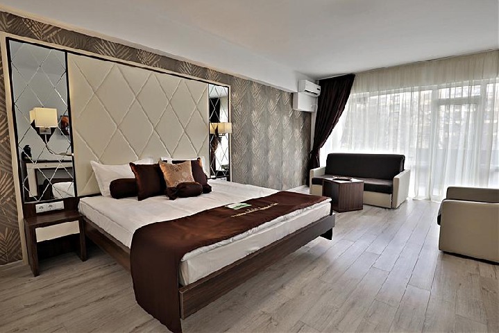 PREMIUM ROOM: 1 двухспальная кровать, раскл.диван, раскл. кресло; 1 ванная комната с ванной или душем; макс.2в.+3р., 2в.+1в.+2р.; 40м2.