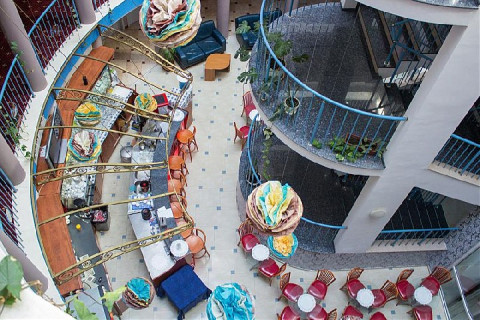 В северной части комплекса, на берегу моря. 132номерa(105 двухместных номеров, 27 трехместных).