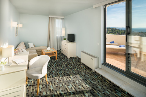 Junior Suite Balcony Sea Side View (38-49 кв.м, просторный номер: спальня с двуспальной кроватью/2 раздельными кроватями, и гостиная, макс. 3 взр)