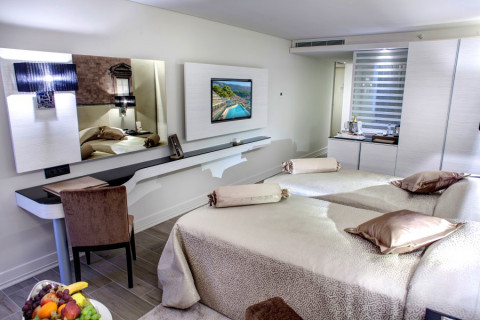 1 номер Presidential Suite (180 кв.м, просторный президентский люкс, включающий спальню, столовую и кухню, комнату для переговоров, финскую сауну и джакузи, с захватывающим видом на Адриатическое море)
