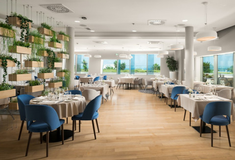 Рестораны и бары: пансионный ресторан с террасой (национальная и международная кухни, show cooking, обслуживание номеров 05:30 – 01:00); ресторан a la carte Langusto с террасой (блюда из морепродуктов), лобби-бар Orsula с террасой; лаунж-бар Palma с террасой; коктейль-бар Nocturne (более ста сортов вина и видов коктейлей); снэк-бар у бассейна Onofrio (закуски, легкие блюда, напитки).