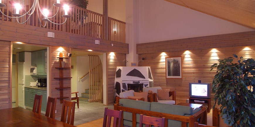 Камин / ТВ (также кабельное), видеомагнитофон или DVD плеер / Радио, Интернет / сауна с электрическим подогрвеом +, мыло и шампунь / Холодильник /морозильная камера / моющая машина + моющее средство / Электрический шкаф для обогрева одежды / Микроволновая печь / Электрический плитп / Чайник / Тостер / Посуда на восемь персон / Постельное белье и полотенца / Стиральная машина + порошок и кондиционер /гладильное оборудование / Фен / Дрова для камин