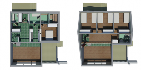 Двухуровневая квартира с кроватями для восьми человек. Все номера двухместные