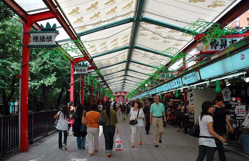 В районе Асакуса свято чтут японские традиции, на улочках совершенно нет транспорта, но расположено множество уютных ресторанов и кафе с японской кухней, есть сувенирные лавки и магазины, где можно приобрести оригинальные украшения, сладости, магические амулеты и ароматные благовония.