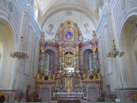 - В 1768 году местные жители снова ходатайствовали теперь уже о возведении капитального храма, и к 1789 году на месте деревянной выросла каменная базилика в стиле барокко, а также было возведено здание монастыря. Позже, когда были выявлены лечебные свойства местных источников, в 1824 году здесь были возведены бюветы и организована лечебница.