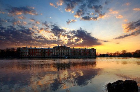 - В 1740 году строительство было приостановлено, в связи с арестом и ссылкой герцога. На тот момент дворец ещё не был подведён под кровлю.