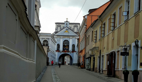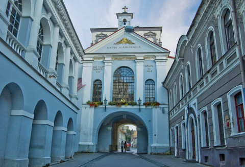 Когда-то в начале 16 века Вильнюс был обнесён мощной крепостной стеной с пятью воротами, одни из которых сохранились до нашего времени — это ворота Острая брама. Столь необычное название одни связывают с фамилией князей Острожских, другие — с длинными металлическими остьями, которыми была усажена крепостная стена. Так или иначе, сегодня Острая брама представляет собой архитектурный памятник, в котором смешались готический стиль и Ренессанс. Аттик ворот украшает литовский герб и изображение Гермеса в крылатом шлеме, наружную сторону башни венчает герб Литовского княжества, под ним — фреска с изображением Спасителя, а справа от башни сохранился маленький участок отреставрированной крепостной стены. Прямо над воротами возведена часовня Остробрамской Богоматери — это один из самых известных и почитаемых образов в Литве. Считается, что икона Девы Марии, расположенная внутри, обладает чудодейственной силой.