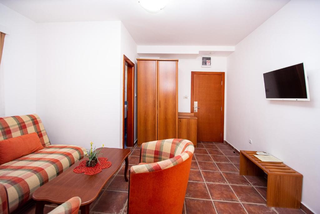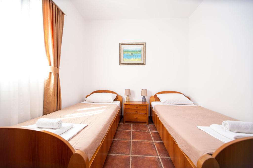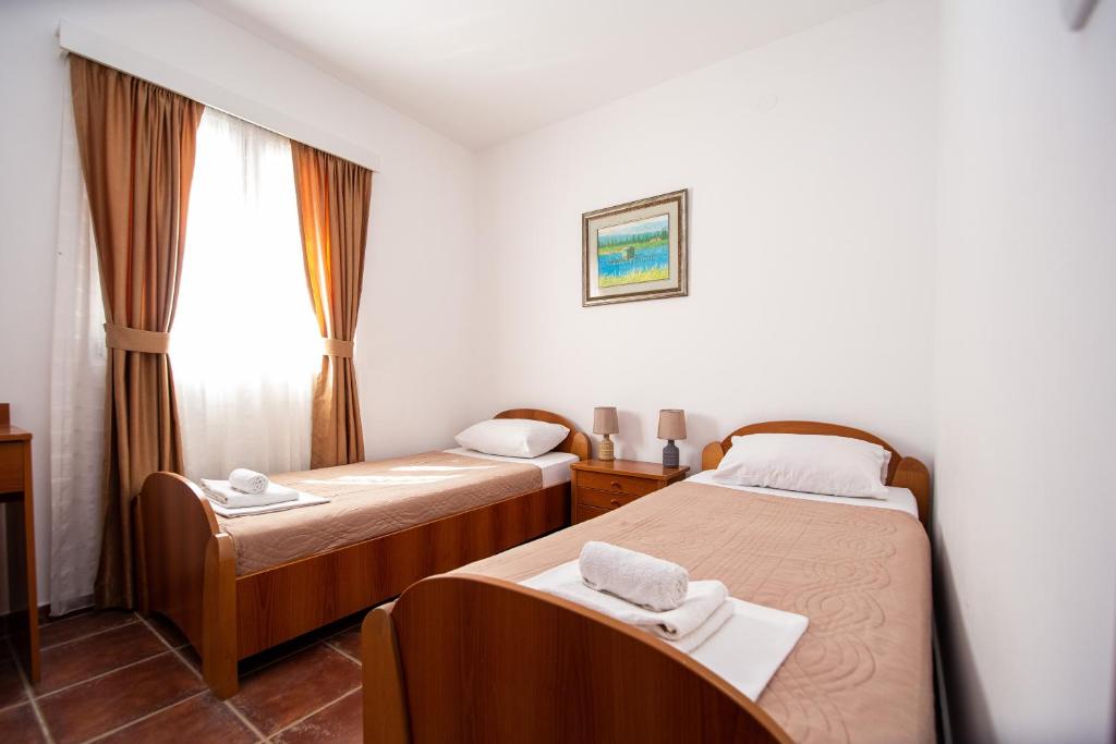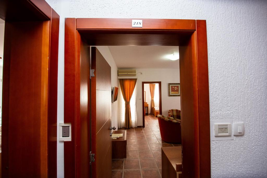 В тихом, спокойном районе Будвы, в 1 км от Старого города, в 750 м от городского пляжа, в 25 км от аэропорта Тиват и 65 км от аэропорта Подгорицы.