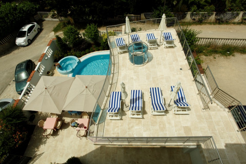Красивый ухоженный двор с фонтаном, к услугам гостей номера различной категории. Стойка регистрации 24 часа, бар, открытый бассейн.