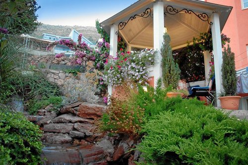 За виллой находится маленький парк с детской площадкой, летней беседкой для гостей и двумя фонтанами, а также с собственным бассейном.