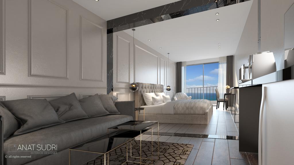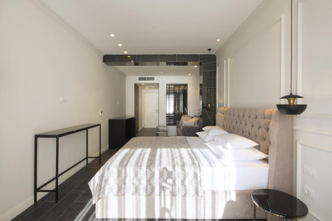 В Suite 1 BR: гостиная с раскладывающимся диваном, чайная кухня, спальня с французской кроватью, кондиционер, спутниковое ТВ, WI Fi интернет, сейф, мини бар, чайник, санузел с душевой кабиной, халаты, тапочки, терраса, вид на море. Площадь: 40 м2. Максимальное размещение: 3 чел.