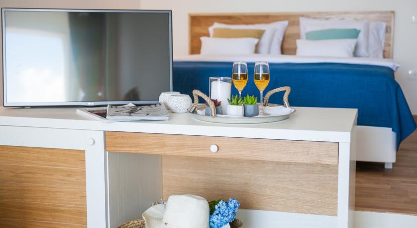 В KING DBL SV: однокомнатный номер с французской кроватью и раскладывающейся софой, кондиционер, спутниковое телевидение, Wi Fi интернет, прямая телефонная линия, мини бар, сейф, санузел с душевой кабиной, туалетные принадлежности, фен, халаты, тапочки, большой балкон с видом на море. Площадь номера 32м2. Максимальное размещение 2+1 человека.