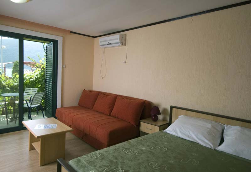 В апартаменте: Французская и дополнительная кровати, кухонный блок, холодильник, кондиционер, терраса, душ. Максимальное размещение – 2+2.