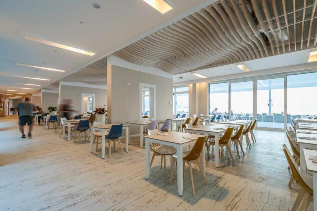 Современное здание, рецепция, главный ресторан, кафе-терраса с прекрасным видом на море, SPA центр на крыше отеля, джакузи, тренажерный зал, детский клуб.