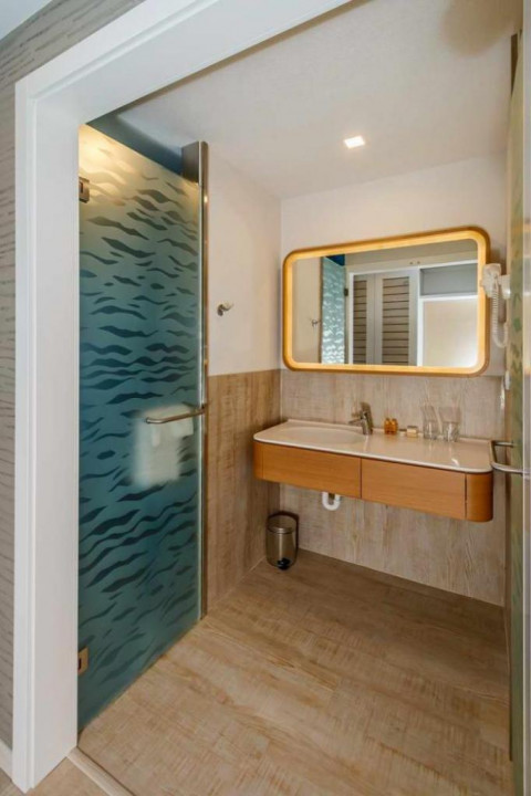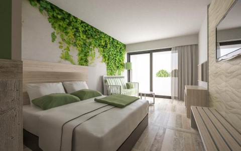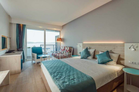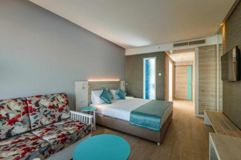 В DBL SV: французская кровать и раскладывающаяся софа, кондиционер, спутниковое ТВ, Wi Fi интернет, мини бар, санузел с душевой кабиной, балкон с видом на море. Площадь: 28 м2. Максимальное размещение: 2 взр+ 2 реб.