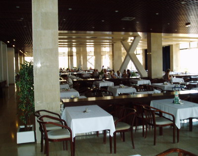 Работает на базе завтраков, полупансиона и полного пансиона (шведский стол).