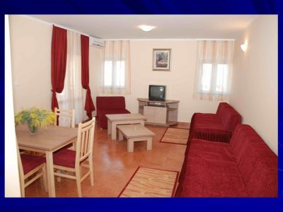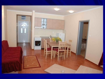 В апартаменте 04: Двухкомнатный номер, в спальне французская кровать, в зале: две кровати, раскладное кресло, кухня, чайник, холодильник, обеденный стол, необходимая посуда, кондиционер, кабельное телевидение, Интернет (бесплатно), в ванной душевая кабина, фен, балкон с видом на море со столом и стульями. Максимальное размещение: 4+1 ребенок.