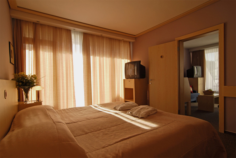 Во всех номерах: балкон/терасса, кондиционер, фен, мини-бар, сейф, проводной интернет за доплату 5 евро в день, телефон, небольшой пиьменный стол, телевизор LCD с интерактивным спутниковым телевидением, халат и тапочки.