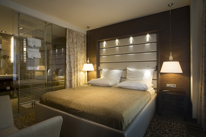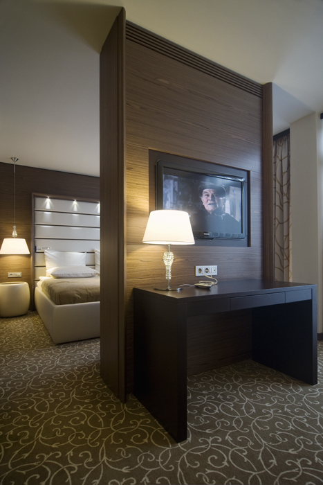 Superior deluxe dbl park: всего 1 такой номер, с видом парк, общая площадь номера около 40m² + терраса 7m². Особенность этого номера состоит в том, что он большой площади, по сравнению с остальными номерами категории DBL на парк и имеет шикарную ванную комнату с собственной сауной, ванну и душ.
