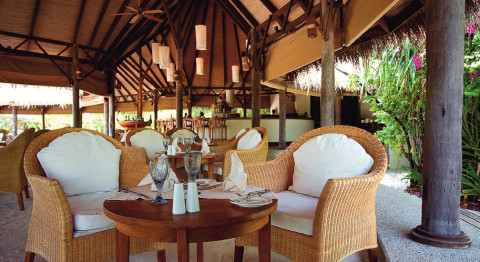 головний ресторан Cowrie (міжнародна кухня), морський ресторан Cornus (мальдивська, тайська і середземноморська кухні), бар Сonch Bar з приємною тропічної атмосферою, бар Beach Bar (смачні легкі закуски і екзотичні коктейлі).