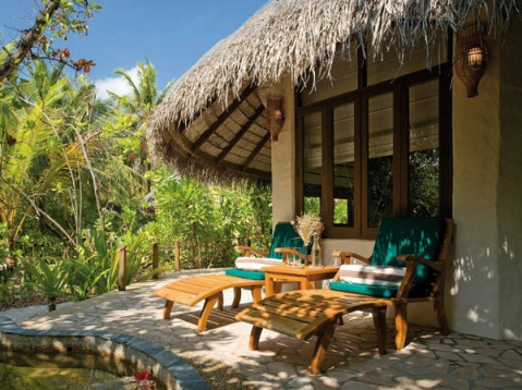 13 номерів Deluxe Villas (87 кв. М, вілли на березі за кілька кроків від пляжу, розташовані на західній стороні острова з видом на захід, ванна кімната відкритого плану з душем на відкритому повітрі, невеликий басейн на терасі)