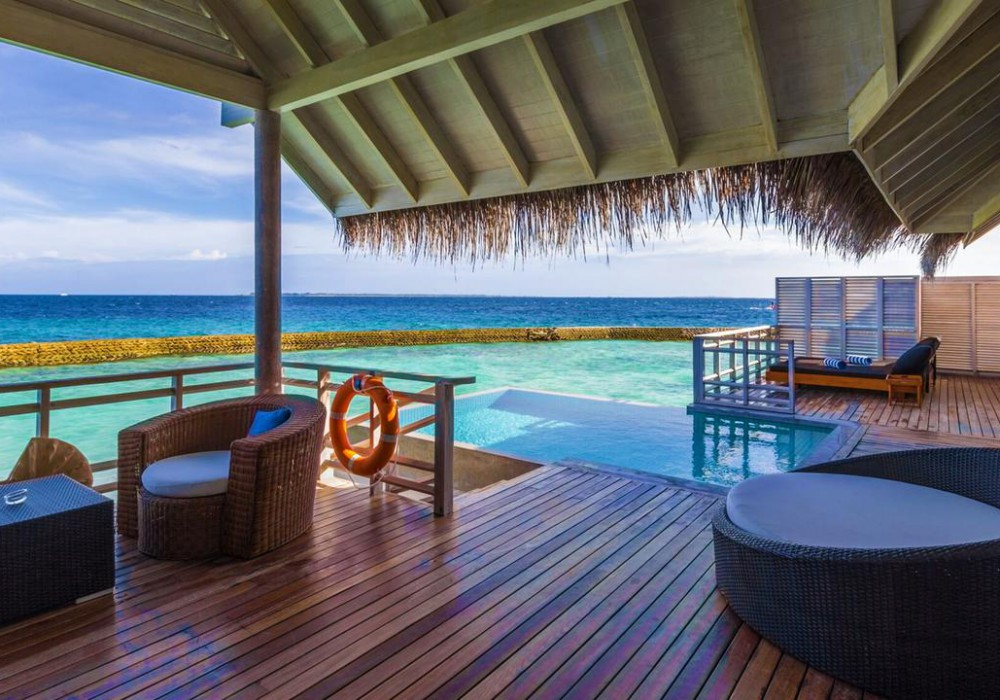 14 номерів Water Villa (118 кв.м, вілли над водою, прямий спуск у воду, спальня з ліжком king size, приватний басейн)