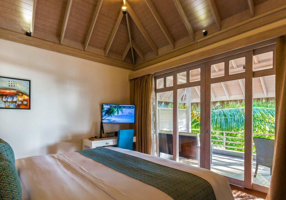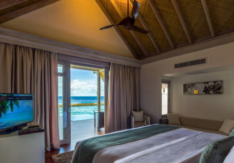 1 номер Presidential Suite (201 кв.м, вілла над водою з видом на захід, прямий спуск у воду, спальня з ліжком king size, вітальня, приватний басейн)