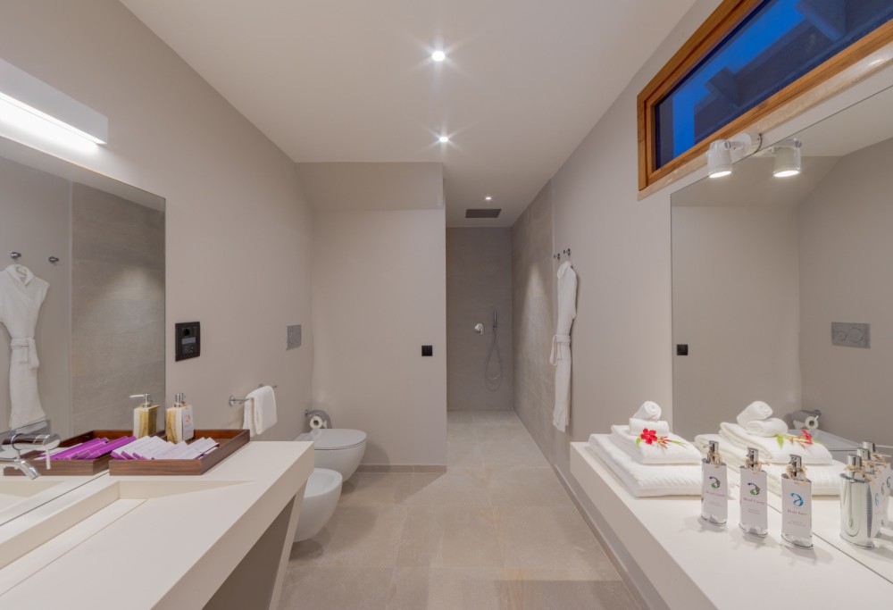 4 номери Water Suite with Pool (208 кв.м, бунгало на воді з власним басейном, ванна кімната з ванною і душем, гамак на терасі)