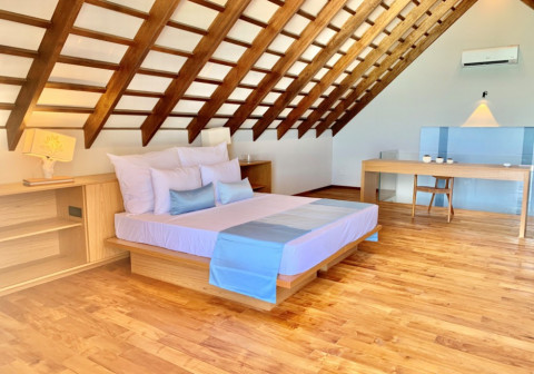 12 номерів Superior Beach Loft (79 кв.м, номери в двоповерхових бунгало на березі, розташовані на другому поверсі, ванна кімната з душем, є номери connect з категорією Beach Bungalow)