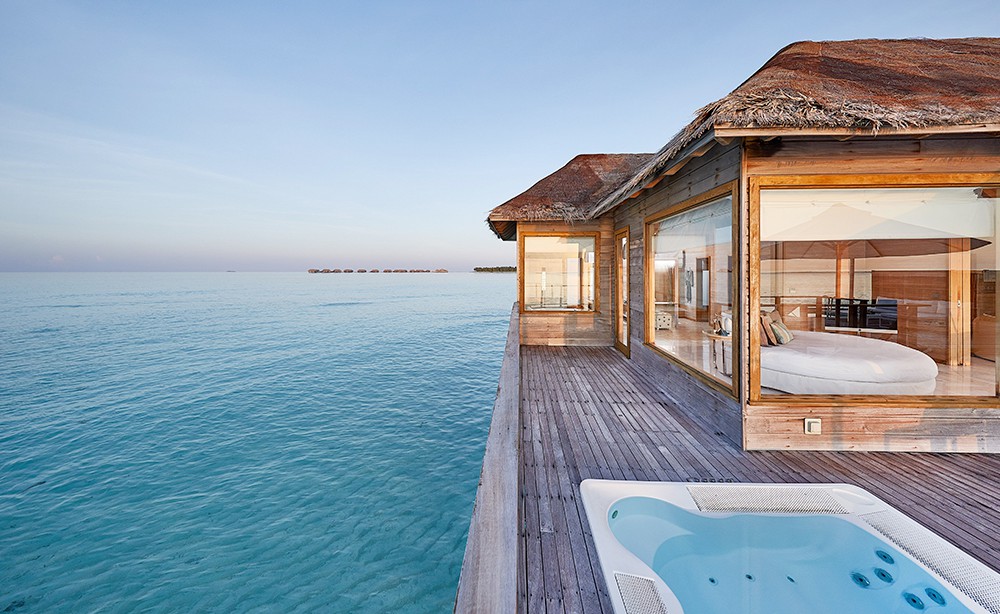 6 номерів Grand Water Villa with Jacuzzi (150 кв.м, водні вілли розташовані в лагуні острова Rangali Finolhu, мають окрему спальню і вітальню, терасу з джакузі і власним спуском в лагуну)