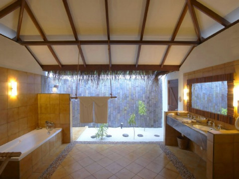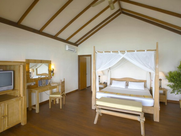 тераса, спальня, кондиціонер, вентилятор, телевізор, CD-програвач, телефон, міні-бар, сейф, ванна кімната з душем під відкритим небом в традиційному мальдівському стилі (в берегових номерах), фен.