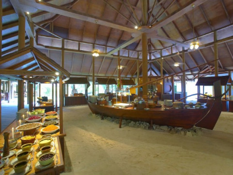 головний ресторан (азіатська, середземноморська, індійська, японська, італійська кухні), бар-ресторан Sunset Restaurant & Bar біля басейну і з видом на захід (легкі закуски, коктейлі, винотека), бар Filitheyo bar в тропічному стилі.
