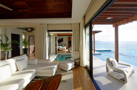 2 номери Ocean Pavilions with Pool (515 кв. М, номери на воді, мають басейн, 2 спальні, вітальню зону, джакузі, прямий доступ до океану.)