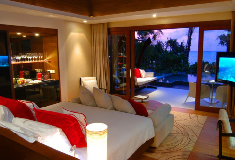 всього 134 номерів, розташованих в шикарних берегових або водних віллах з видом на океан.